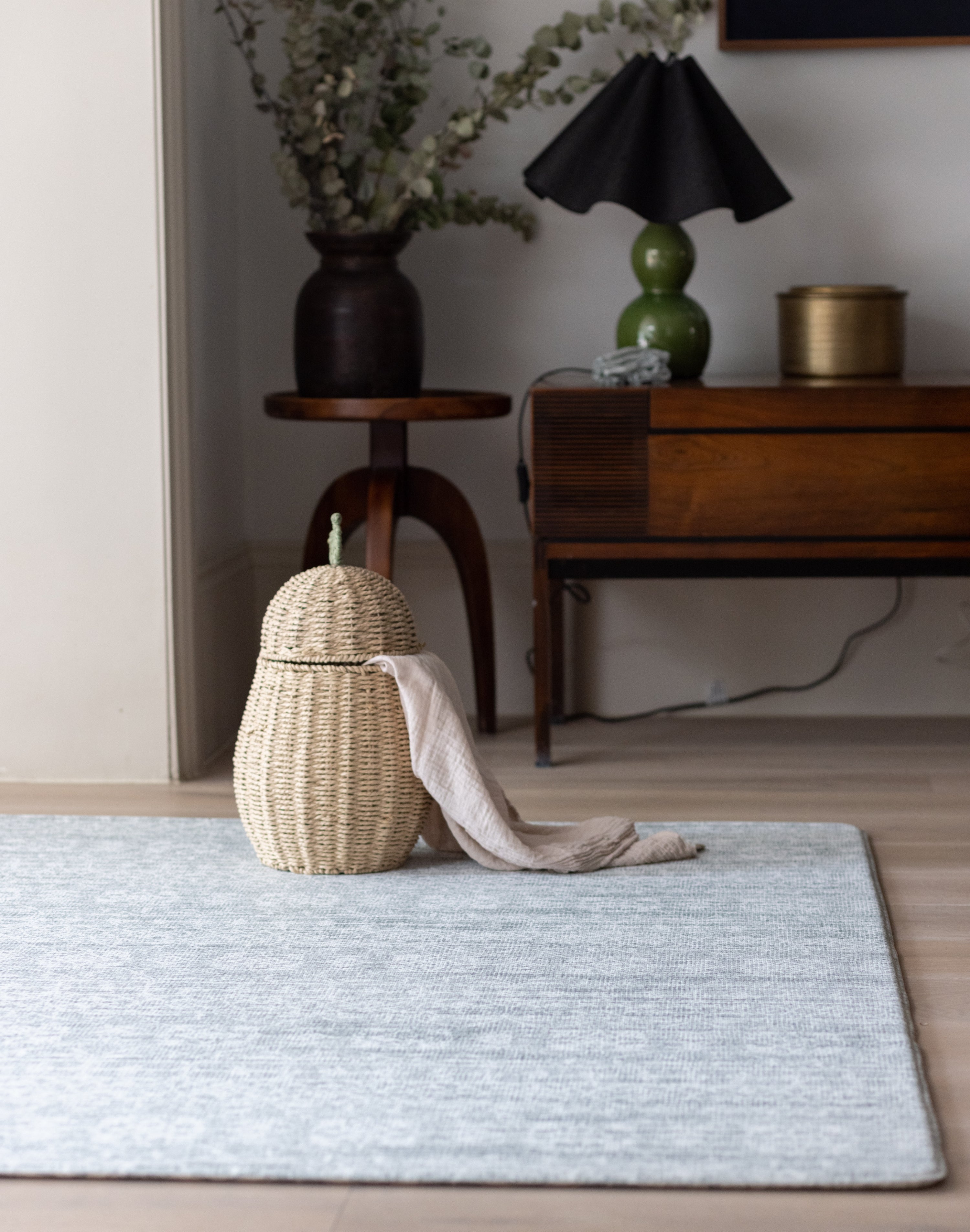 Our signature Kilim playmat collection is inspired by timeworn rugs and are ideal for sitting as a rug alternative in the home. From a creamy, dove grey Globe Trotter to a deep, midnight teal of the Wanderlust, the collection of six Kilim wipeable playmats has an option for every home.