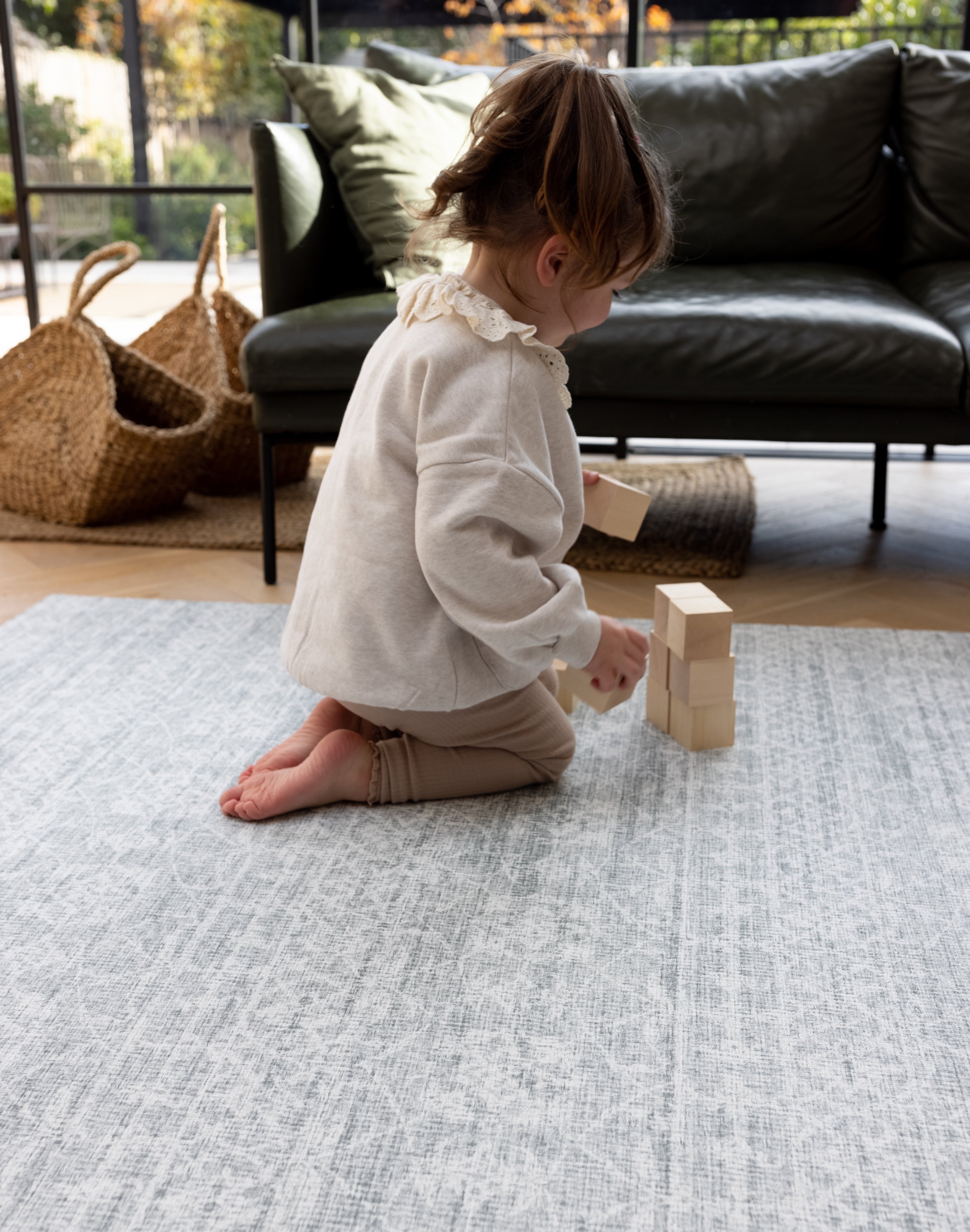 Inspired by decorative Indian block-printed textiles, The Brimfield is a beautiful Batik playmat, featuring intricate medallions interwoven with vines + a textured effect. A stylish yet durable rug alternative, it’s perfect for practical family living and refined interiors.